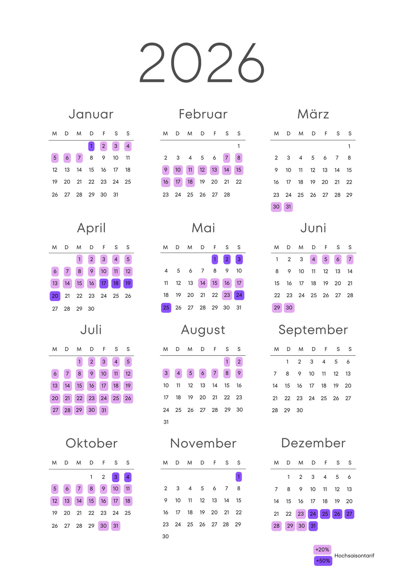 Bitte scrollen für die Hochsaisontarife.